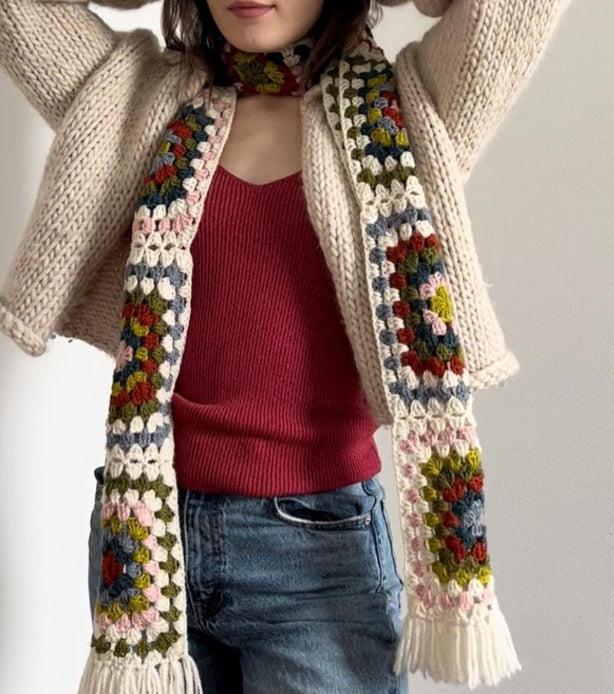 Granny Square scarf crocheted using Woolstok yarn.